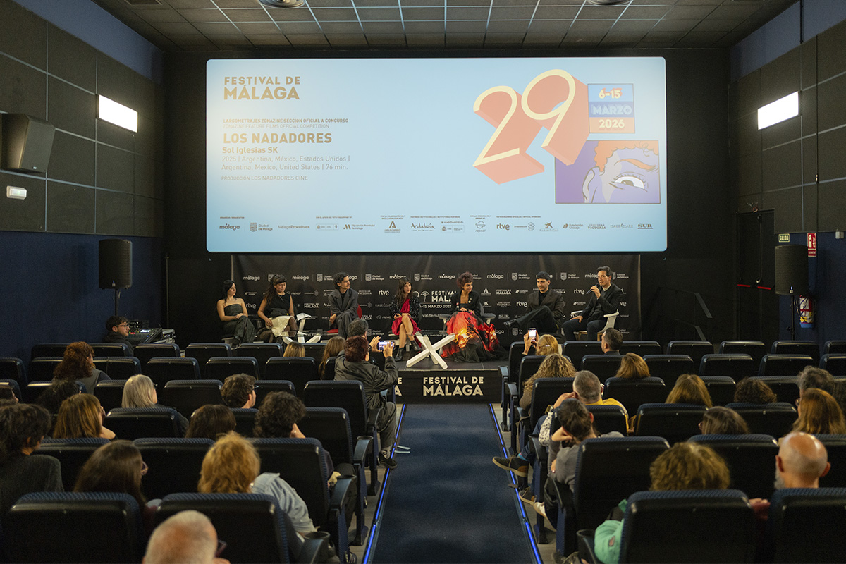 La película Los Nadadores, dirigida por Sol Iglesias SK, ha inaugurado hoy la sección Zonazine del 29 Festival de Málaga. La proyección ha tenido lugar en la sala 3 del Cine Albéniz, dentro de una de las secciones del certamen dedicada a las propuestas más arriesgadas y a las nuevas miradas del cine contemporáneo.