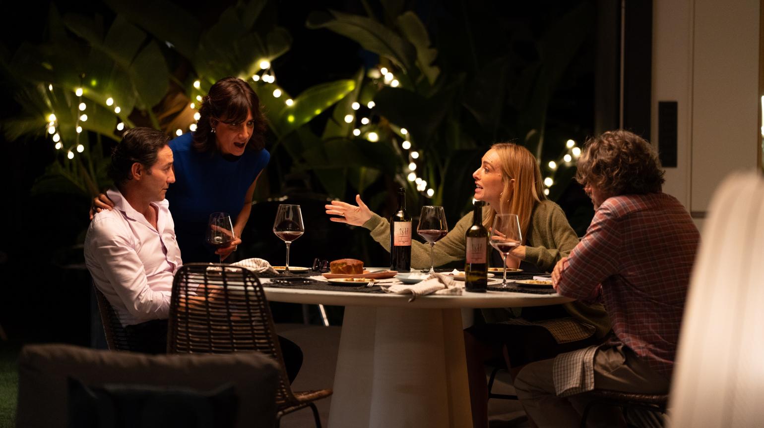 SINOPSIS Cuatro amigos se reúnen en una agradable cena, acompañados de una copa de vino y alejados de los problemas. Sin embargo, las insatisfacciones llegan según avanza la noche y surgen temas que inquietan, como el miedo, la pareja, la amistad, el sexo, el trabajo o la muerte. Una historia en la que se habla de todo en minúsculas: con humor, ternura y empatía. Así, entre el dolor y la carcajada, los cuatro protagonistas intentan enfrentarse a sus miedos y a sus decepciones, recuperar la esperanza y, sobre todo, aprender a reírse de sí mismos.